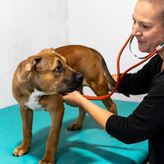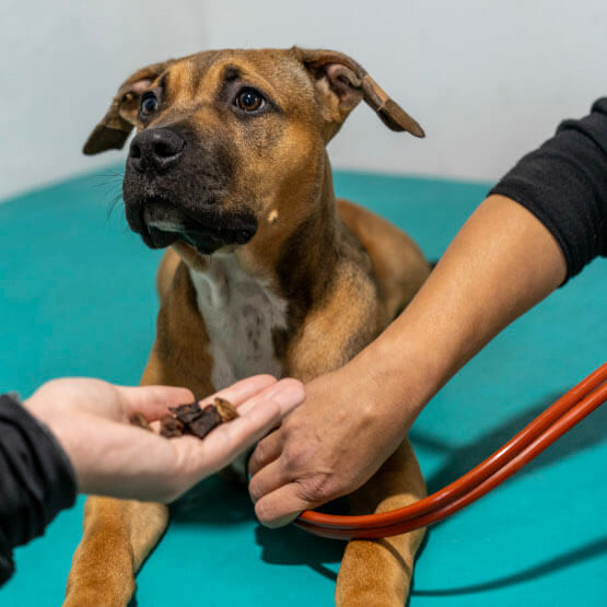Beim Medical Training geht es darum, dass Welpen oder auch z.B. ängstliche Hunde lernen, sich überall berühren zu lassen und auch Gerätschaften wie einen Ultraschall, ein Stethoskop oder auch nur die Zeckenzange zu akzeptieren.